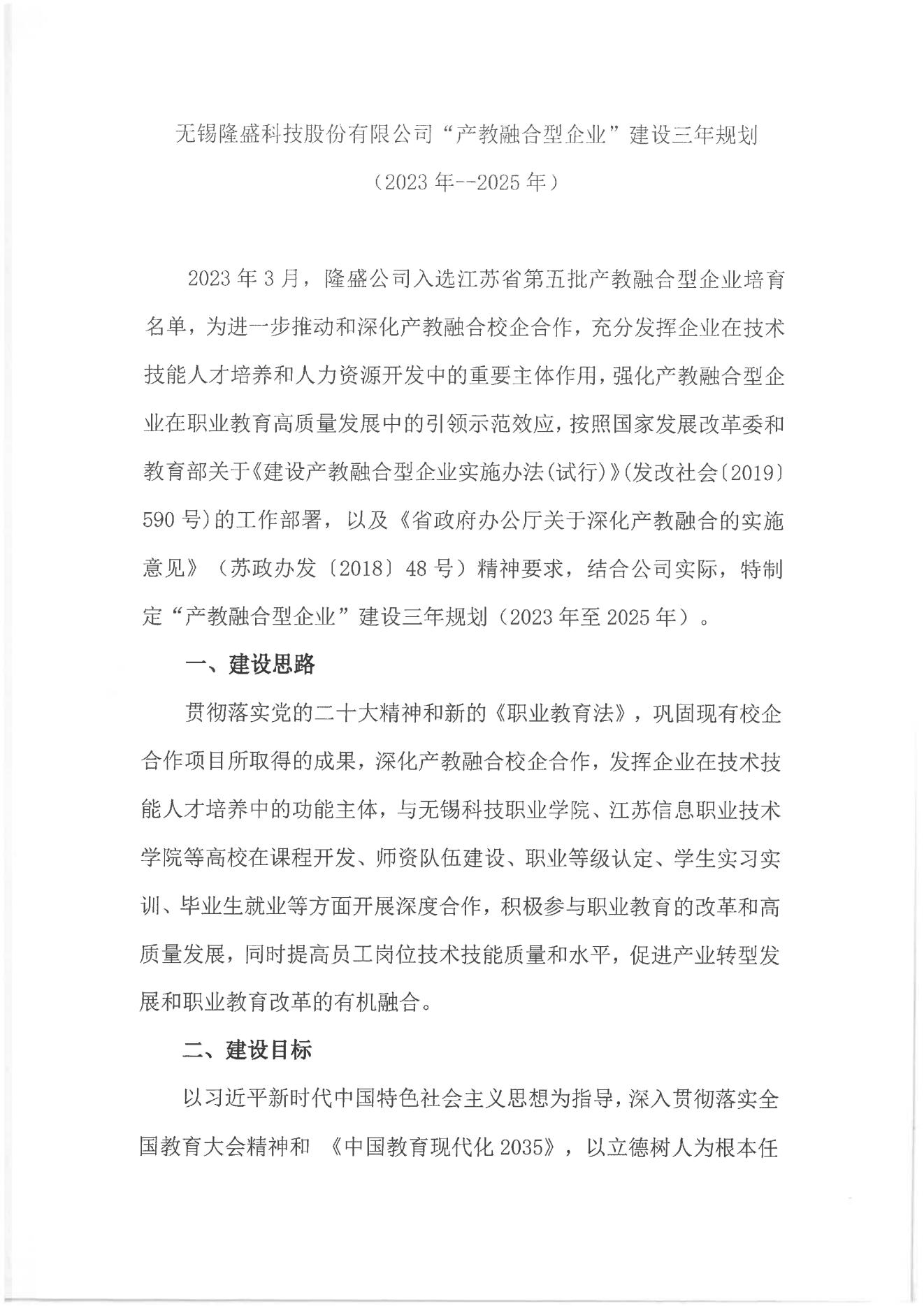 無(wú)錫隆盛科技股份有限公司“產(chǎn)教融合型企業(yè)”建設(shè)三年規(guī)劃
